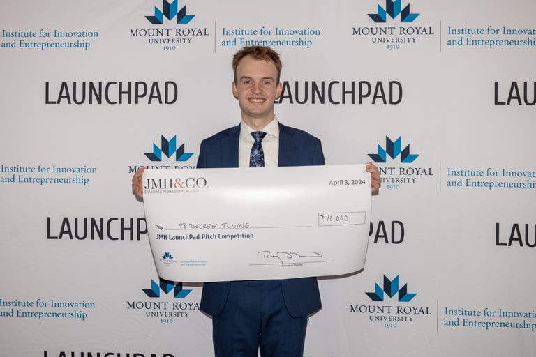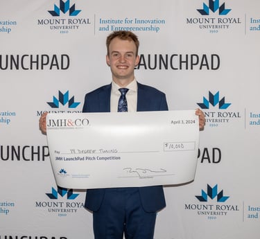 As a participant in the LaunchPad program at Mount Royal University, Reese had the opportunity to launch the business he had envisioned for years. As an avid snowboarder, he frequently encountered the challenge of not having his snowboard waxed and ready for the next day, primarily due to the slow turnaround times at traditional ski shops. Recognizing that he was not alone in this struggle, Reese founded 88 Degree Tuning—a pick-up and drop-off ski and snowboard tuning service. In April 2024, he entered 88 Degree Tuning into the annual JMH LaunchPad Pitch Competition, where he successfully pitched to a panel of esteemed judges and won $10,000 for the company. Utilizing these funds, along with his skills in tuning, marketing, and graphic design, Reese has effectively grown the 88 Degree Tuning brand, attracting customers from across Calgary. As the 2025-2026 season is approaching, we are gearing up for a snow-filled winter (hopefully)!
